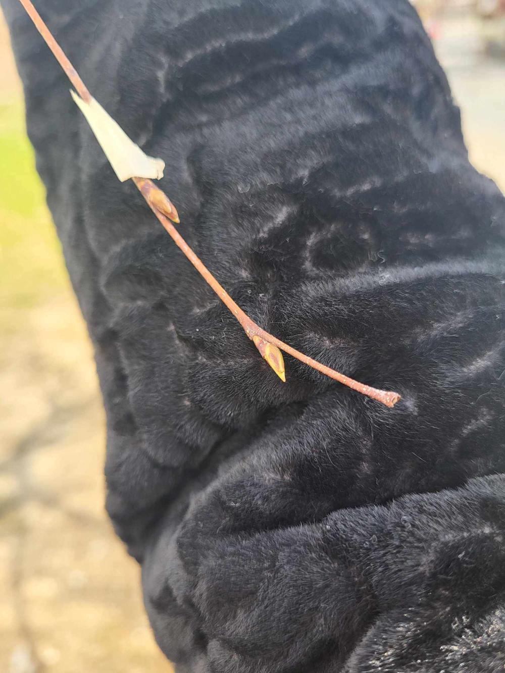 We are observing four buds. Buds 1 and 4 have already burst, while buds 2 and 3 are still swollen. The average temperature in our region during March is 11 degrees Celsius.