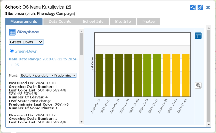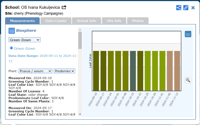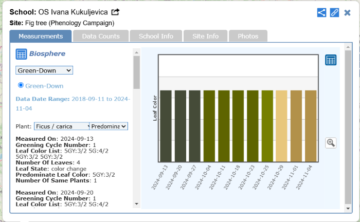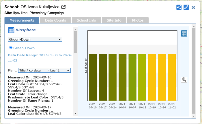 After the autumn measurements of the yellowing (Green Down) of our linden, birch, cherry and fig trees, see our results in a graphic display. This is our Green Down Data!