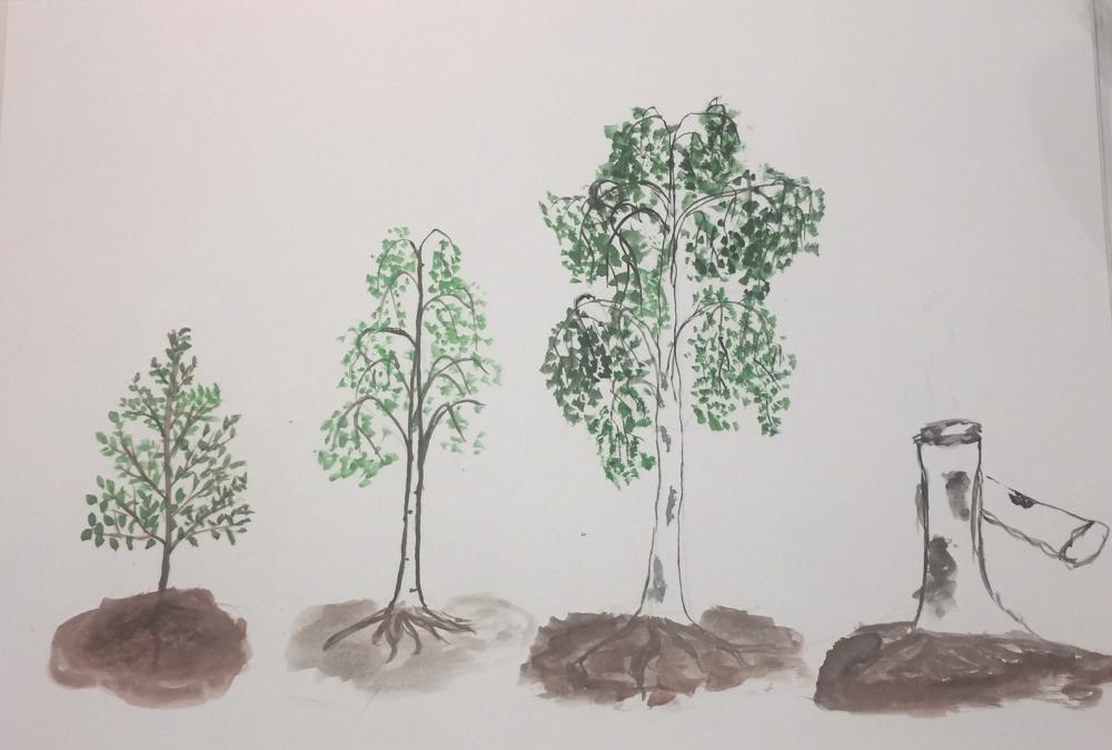 The birch tree: 1 Young tree; 2 Mature tree; 3 Old tree; 4 Dead tree