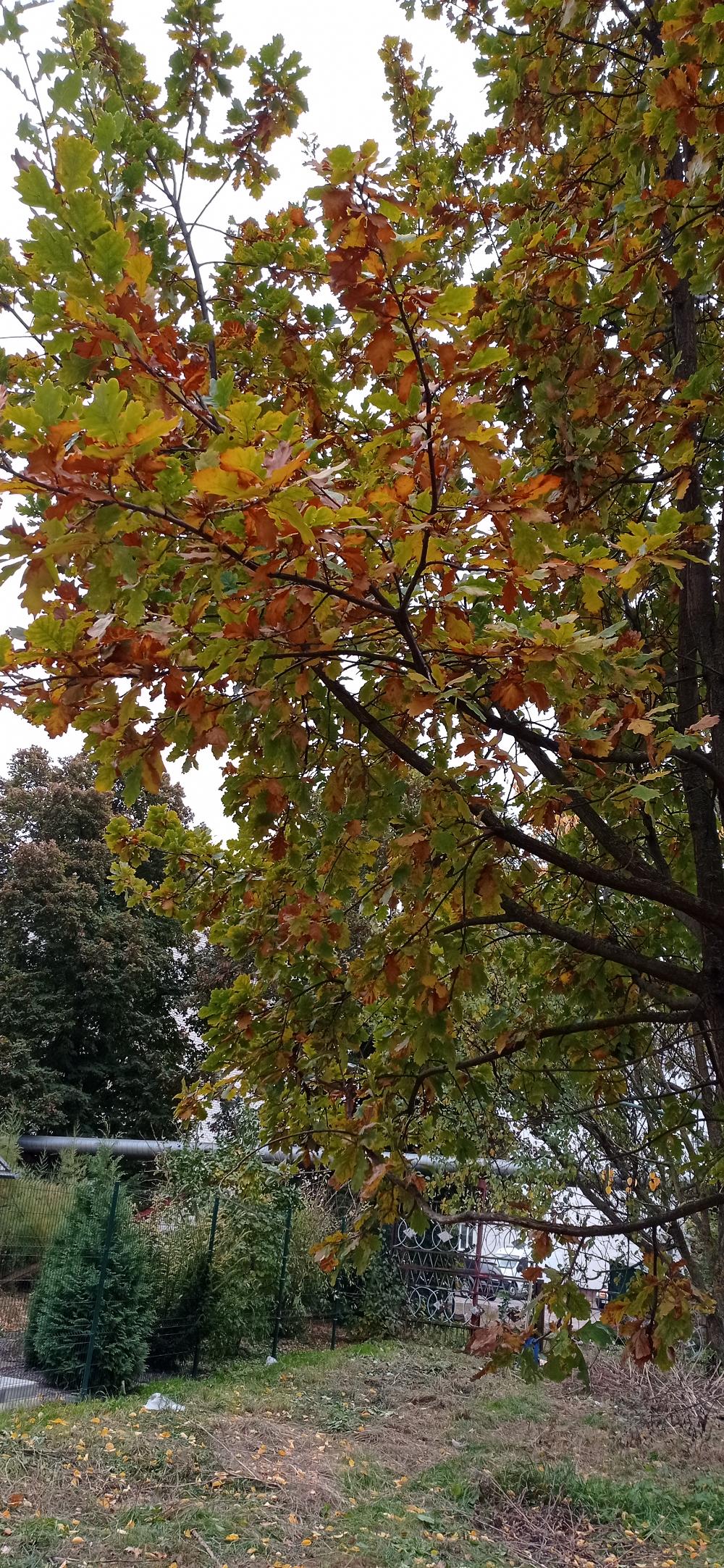 We have a real autumn in Ukraine. On our oak, many  leaves are yellow or brown. On October 15, we noticed that the first leaf had fallen. In general, there are already a lot of fallen leaves under the tree.Nataliia Maisak