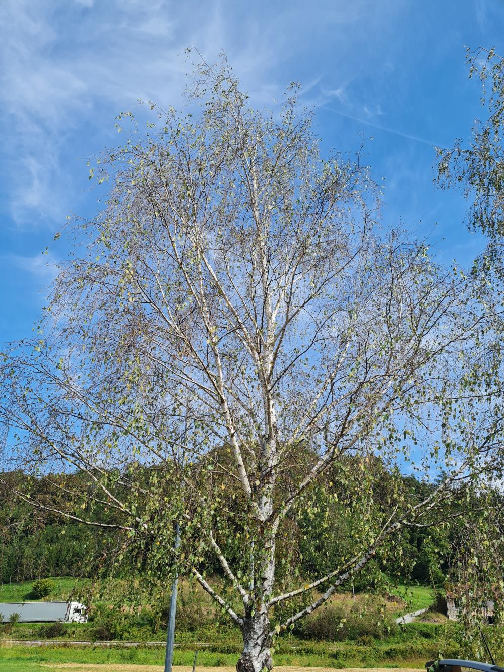 On the other birch a lot of leaves have already fallen.
