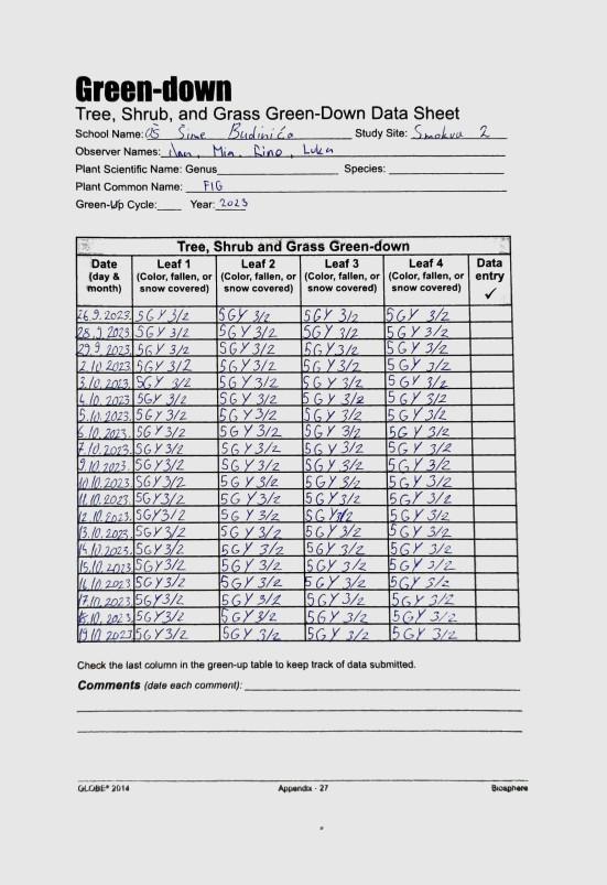 We continue measuring our fig tree (ficus carica) in the school yard.