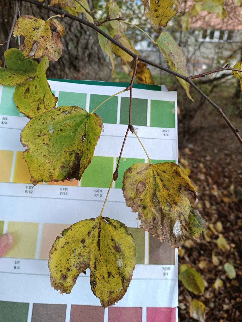 leaft 1. 5GY 5/10; leaft 2.  2.5Y 8/12; leaft 3.  2.5Y 8/12; leaft 4. fell off