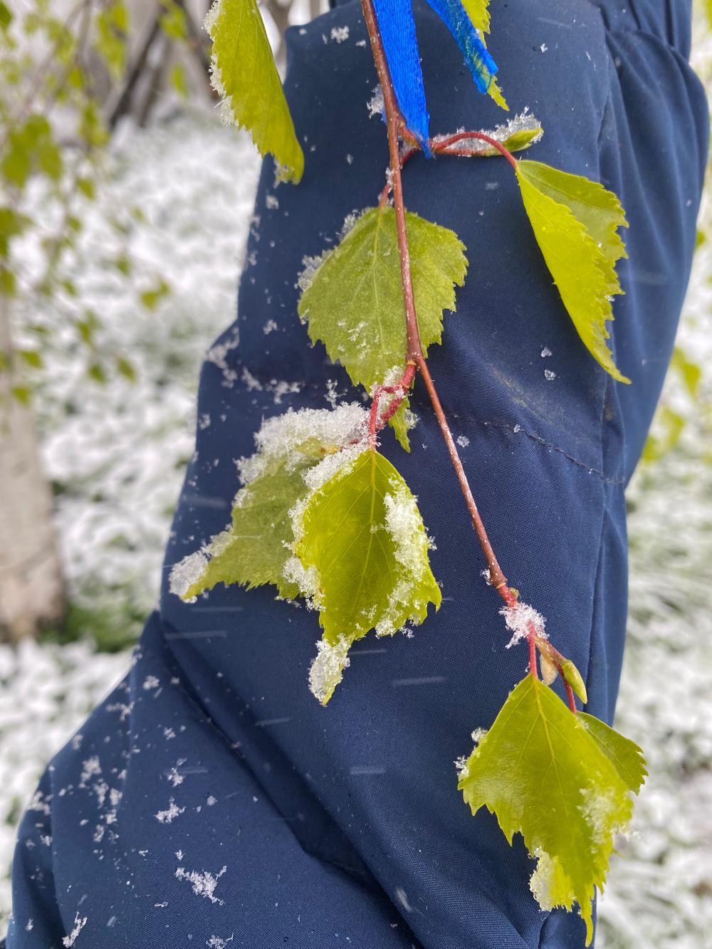 We are observing Betula pendula.  Current temperature is 0 C. Snowing.