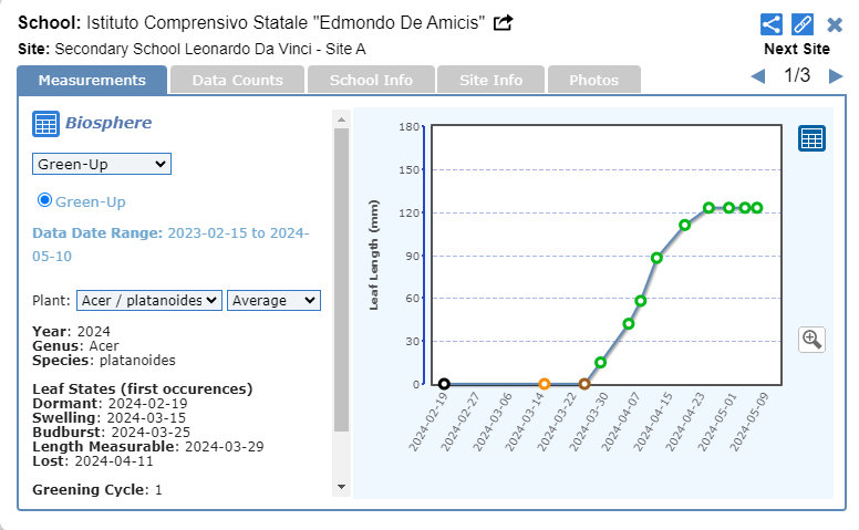 CURLY MAPLE (Acer platanoides): budburst occurred almost on the same date as in 2023, but leaves have grown more slowly.
