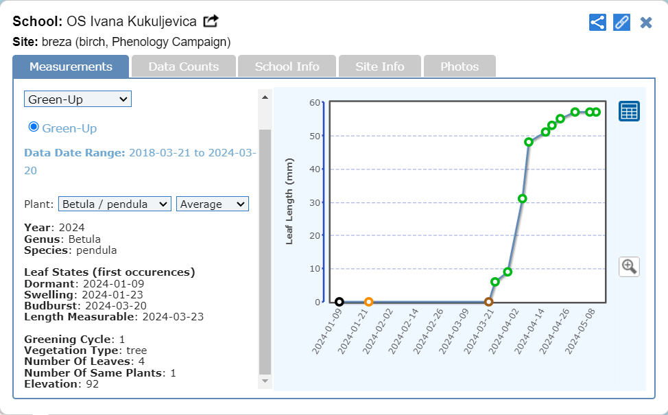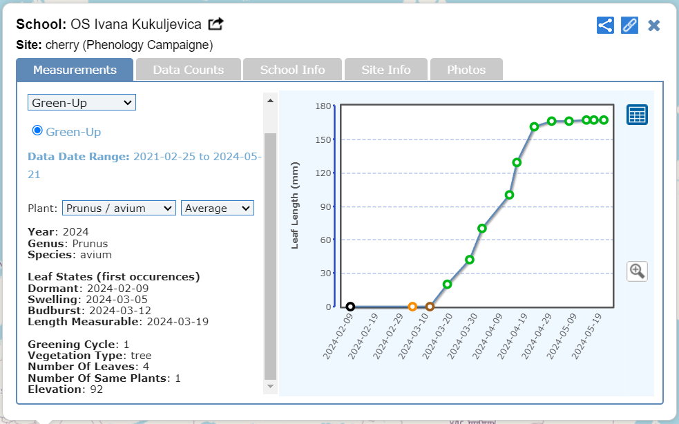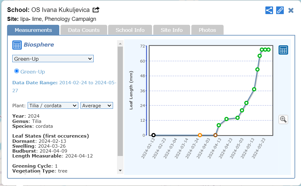 these are the results of our measurements and graphic representations of the greening of our trees, birch, linden and cherry.