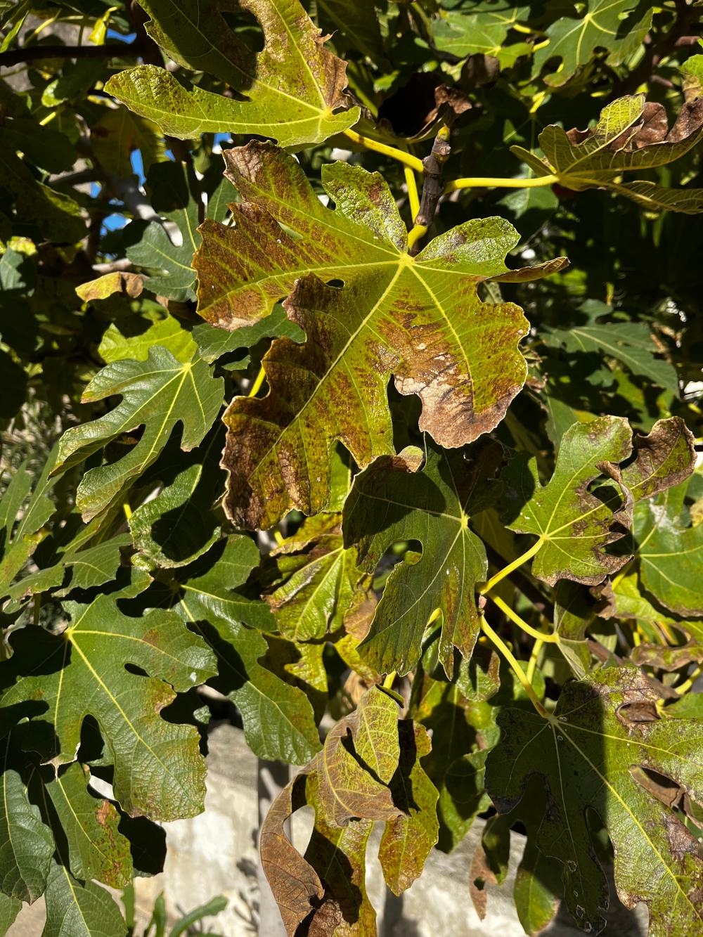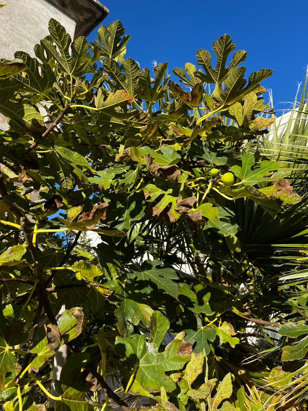 On 21st November, three leaves on the fig were brown (7.5YR: 3/4) and one was green (5GY: 4/8).