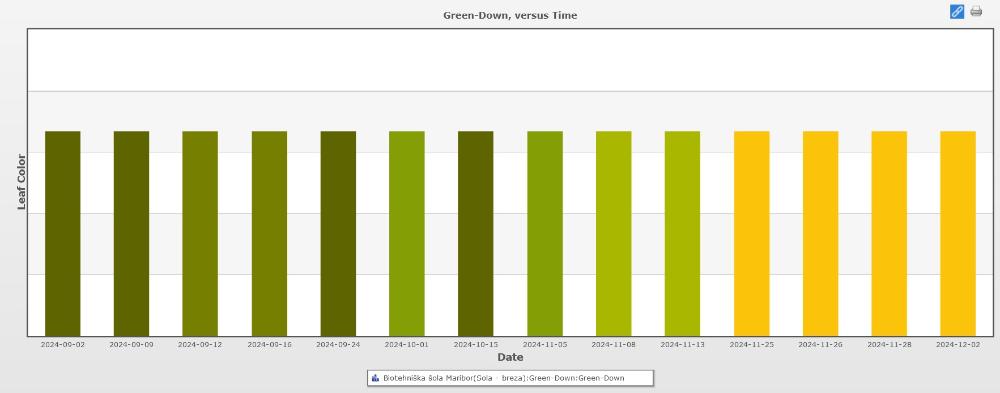 At the Biotechnical School Maribor, we have been recording the coloring of birch leaves.