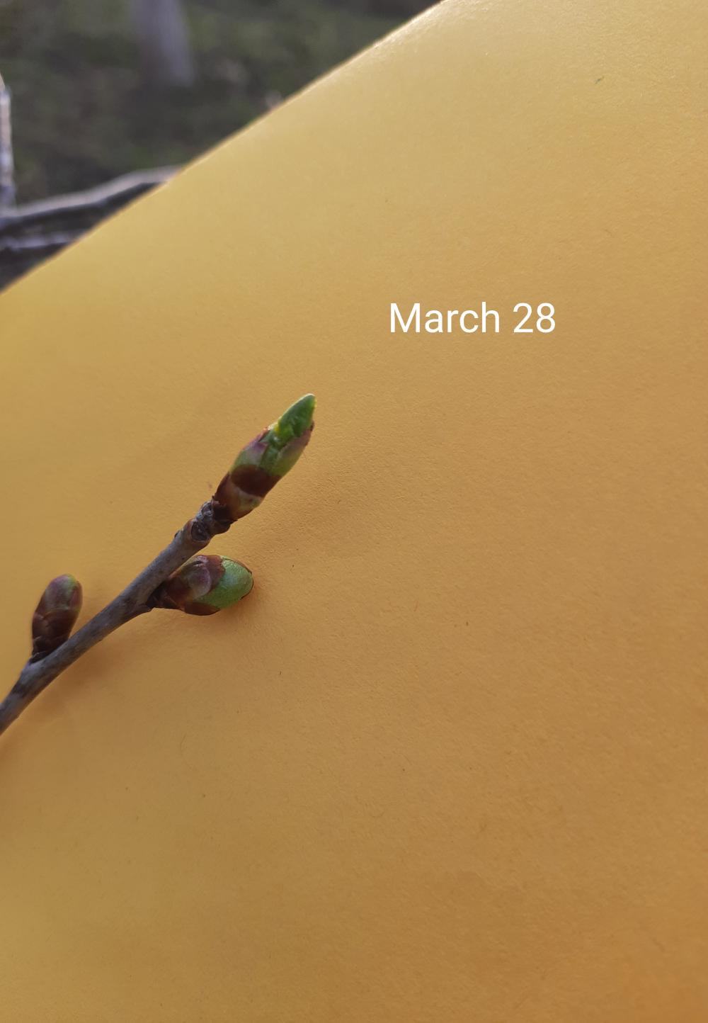 28 March Cherry tree 1: leaf 1:  3 mmleaf 2 : 2 mm, leaf 3: 1 mm, leaf 4: 1 mm