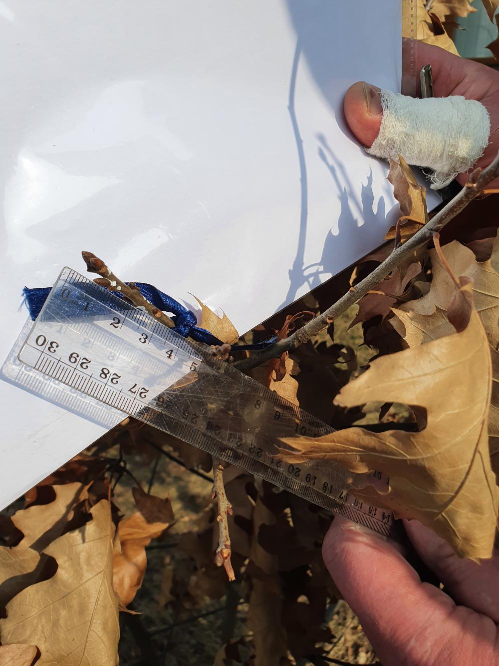 All four buds the oak (Quercus rubra) - dormant, buds length: 1. -6 mm; 2, 3, - 5mm, 4. – 4 mm