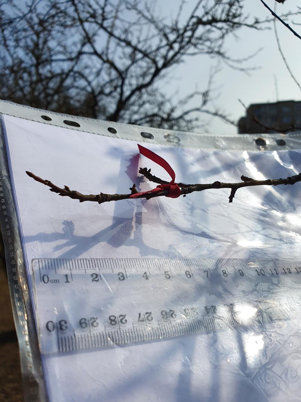 All four buds the plum (Prunus cerasifera) – dormant, buds length: 1, 2, 3, 4. – 1 mm