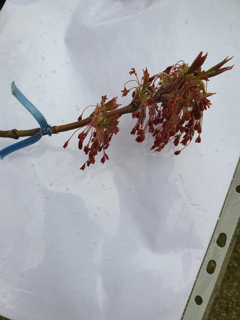 The maple is in bloom, the first leaves are spreading