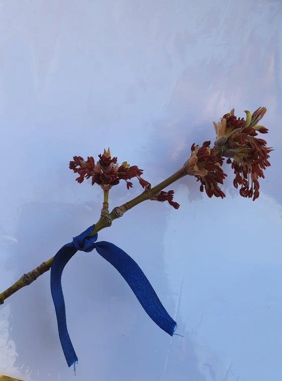 All four buds the maple (Acer negundo) - budburst. The maple continues to spread its flowers. The first leaves are also visible.