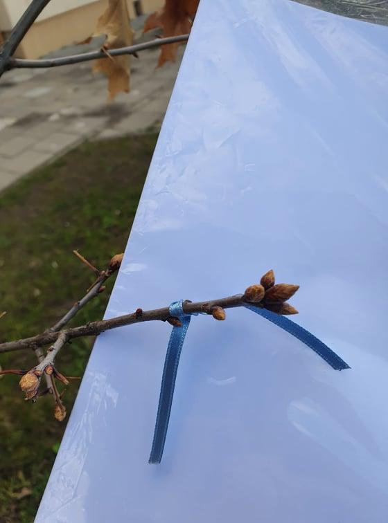 Plum (Prunus cerasifera) first and second buds swelling, and 3 and 4 budburst.