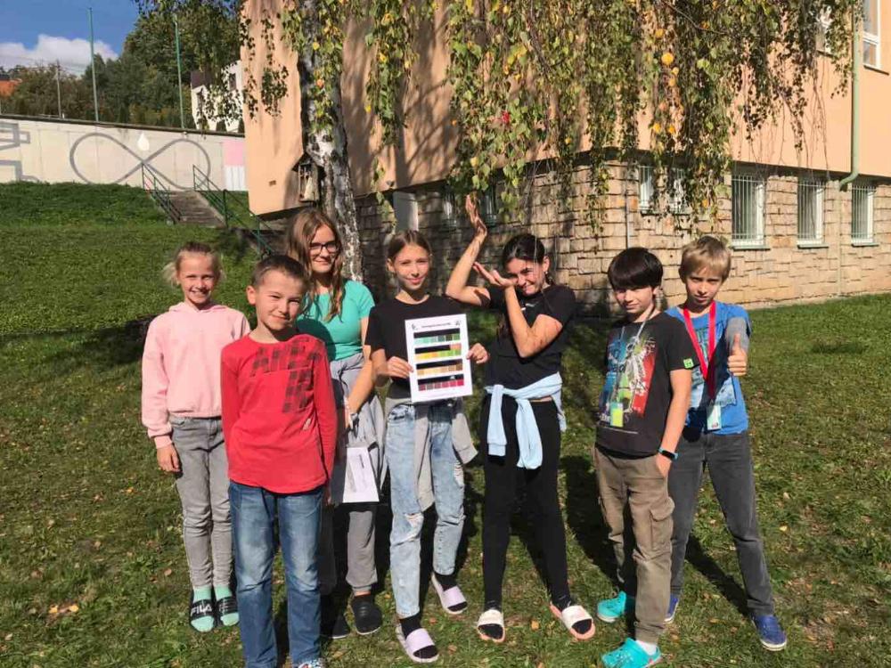 many greetings after a week.... we are sending photos from last Friday. The leaves are still green, we are recording our observation -  the colour of all four leaves - on the Green-Down data sheet. The weather on Friday 7th was really beautiful :-)