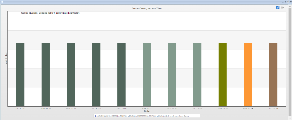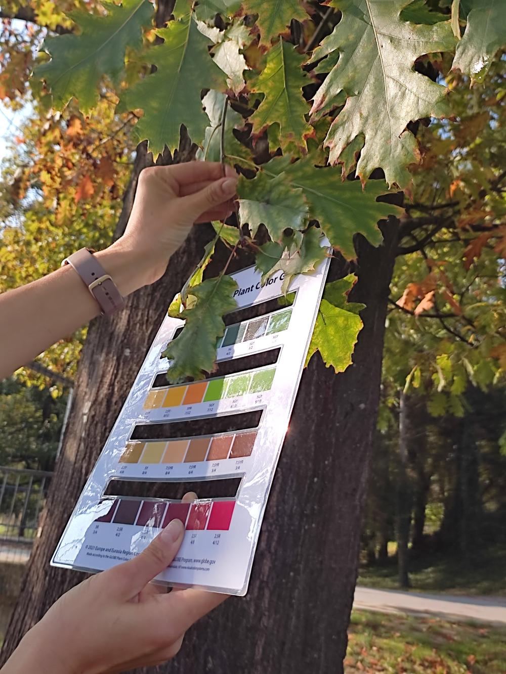 Greetings to everyone. I am Martina Simić Meznarić. I am a GLOBE teacher at Elementary School Izidora Poljaka Višnjica. This academic year, my students studied the yellowing of the oak tree in the home school and the yellowing of the birch (2 trees) in the district school. The oak leaves changed colors very slowly and then the colors suddenly changed in one spot.
